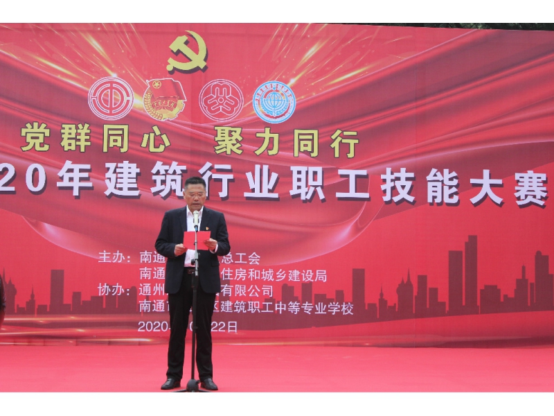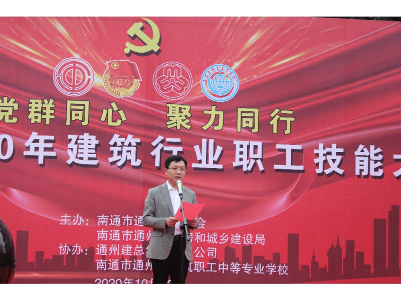 由通州区总工会、通州区住建局主办,通州建总与通州建校协办的2020年通州区建筑行业职工技能大赛于10月22日在通州建校举行。本次大赛共设有砌筑、瓷砖贴面、塔式起重机3个比赛项目。来自南通四建、通州建总、南通新华等建筑企业的45名选手将同台竞技。