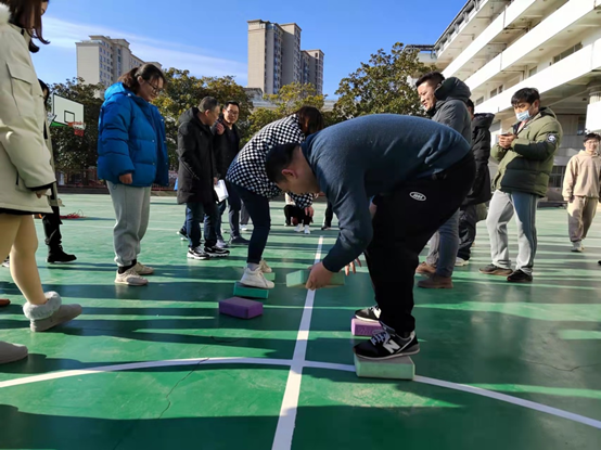这次运动会比赛项目有摸石过河、8字跳长绳、企鹅漫步、滚雪球、飞镖、羽毛球、掼蛋、乒乓球八个比赛项目,每一个比赛项目都是智慧和体力的角逐,更是团队协作的完美比拼。教职工们在比赛中激情饱满、互相配合、团队协作、全力以赴,在这个趣味昂然的运动会中大家既玩得尽兴又赛出了成绩。