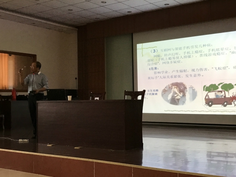 2017年6月8日下午,通州区虹西社区居委会邀请我校师生参加了一次以心理健康卫生为主题的集体班会课。本次集体班会课特邀南通大学心理学兼职副教授戴伟华主任进行讲座,现场氛围非常的热烈,师生们连连鼓掌。戴教授在集体课上分析了网络、手机等电子产品在当今生活中产生的危害,并给同学们进行了引导。