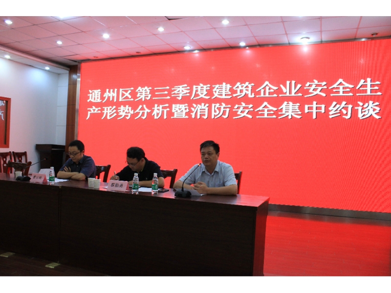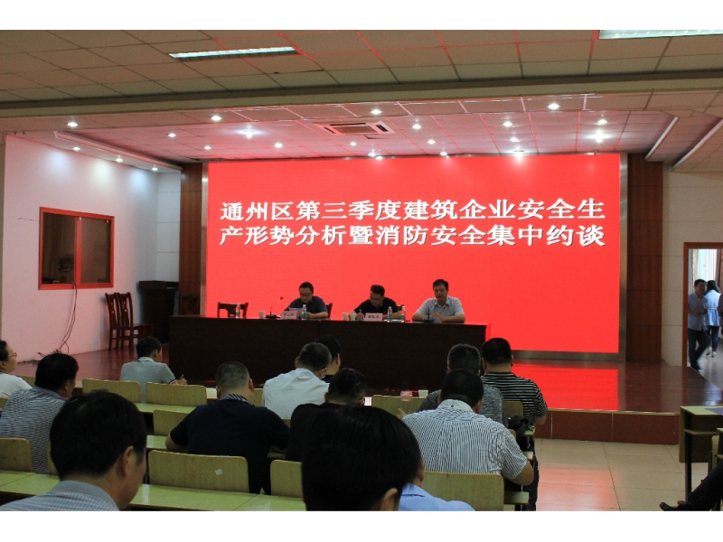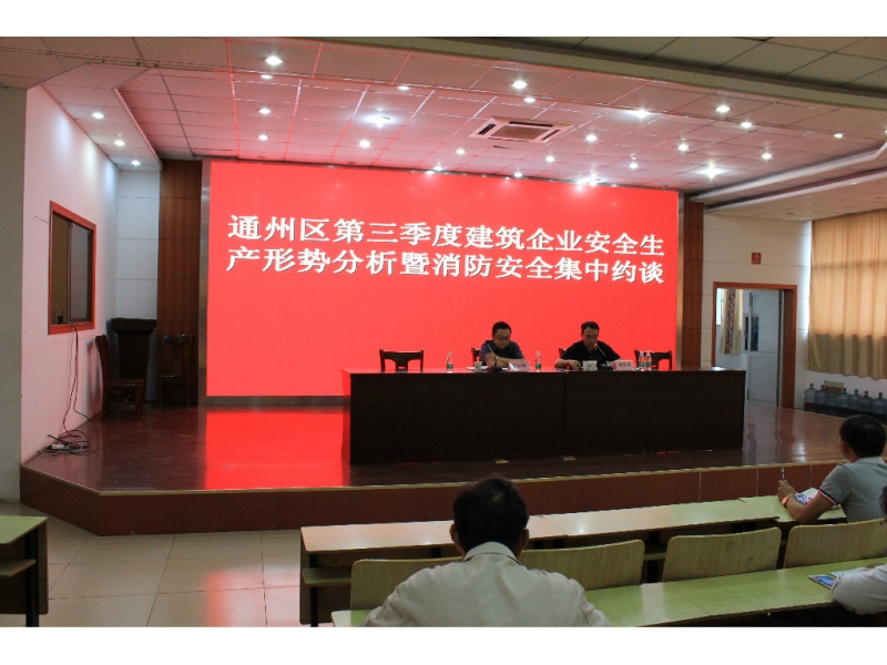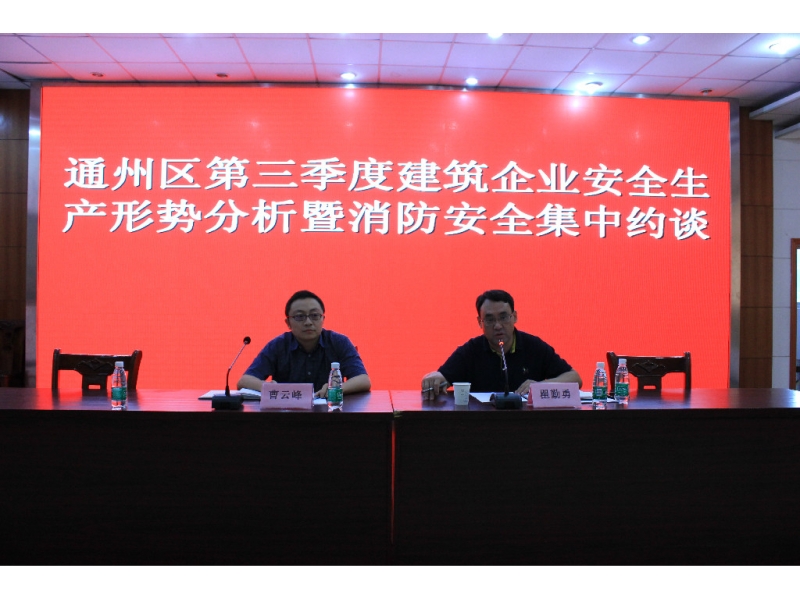 通州区第三季度建筑企业安全生产形势分析会暨消防安全集中约谈会在我校举行
