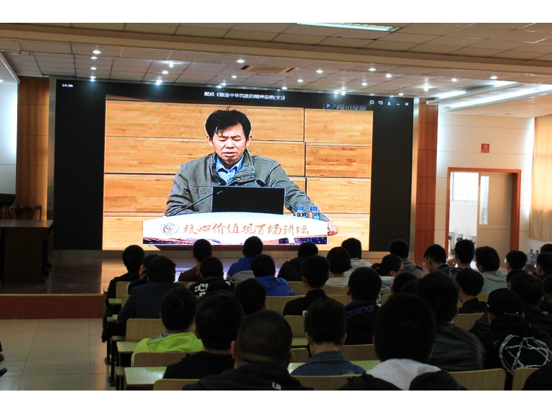 为响应党中央的号召,学习社会主义核心价值观的具体内容,提高认识,10月18号下午,我校全体师生在多功能会议厅集体观看了戴旭教授的演讲视频。此次演讲深入分析了甲午战争失败和抗日战争胜利,回忆了同一个战争舞台上,同一个对手,不同时空的两次生死决战,将历史与现实相结合,讲述中华民族的精神所在。