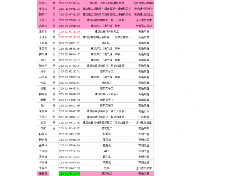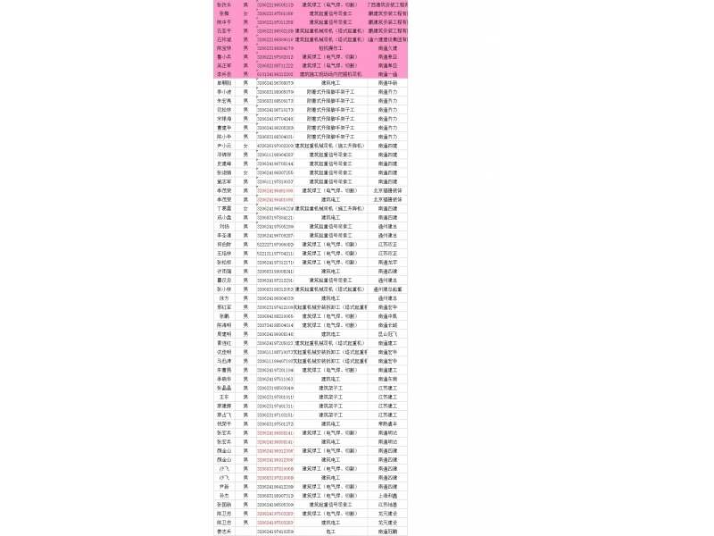 建筑类特种作业培训人员名单