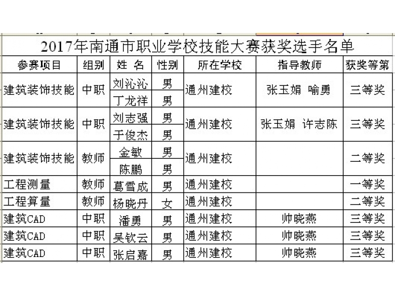 一年一度的南通市职业学校技能大赛圆满落幕,我校派出的教师和学生代表在本届比赛中取得了优异成绩。教师葛雪成和杨晓丹、学生刘沁沁和丁龙祥晋级江苏省技能大赛决赛。